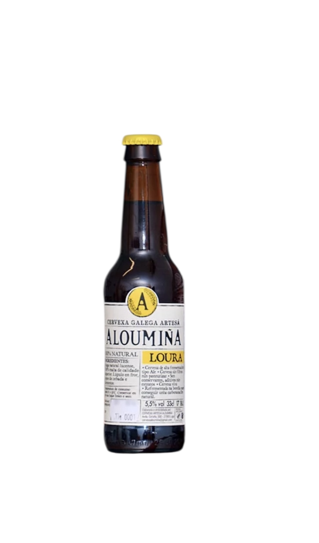 Cerveza artesana Aloumiña Loura is a craft beer brewed by Aloumiña in the Tinería district of the city of Lugo.