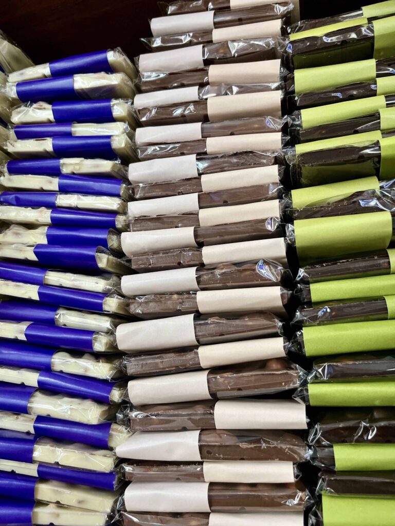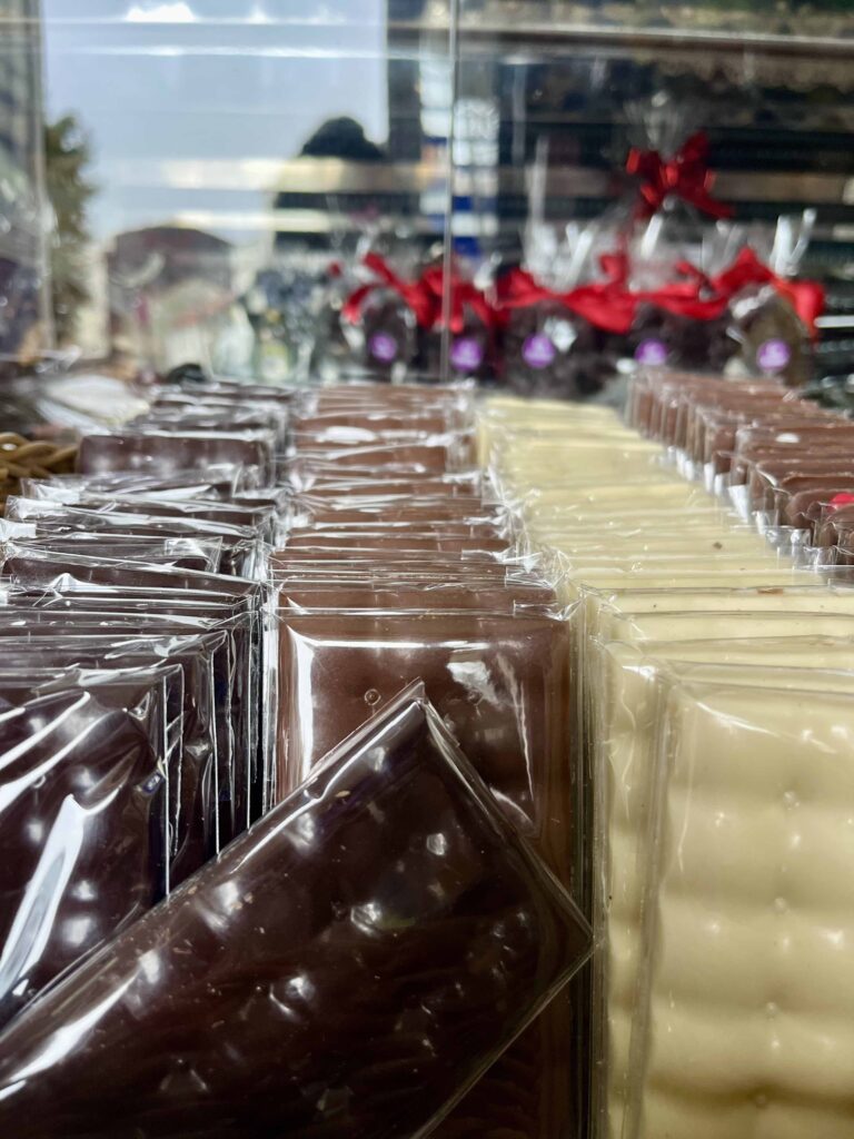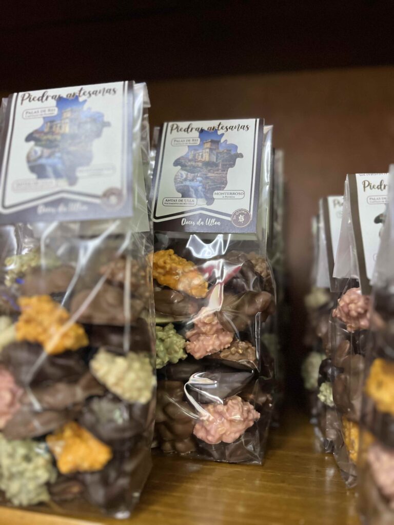 Na vitrina do seu entrañable local vas atopar un despregamento de variedades de chocolate que sempre conquistan os padais máis esixentes. Desde tabletas de chocolate negro, branco e con leite, as súas famosas “pedras” de chocolate artesán elaboradas con améndoa tostada, os seus entrañables mini chocolatinas ideais para os máis pequenos ata o seu indescritible turrón clásico de chocolate e arroz inflado que desata paixóns cada Nadal.